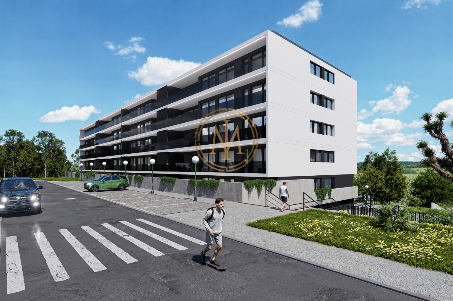 Apartamento T2 situado no primeiro piso, com uma generosa área exterior e lugar de garagem, inserido num empreendimento moderno pensado para quem valoriza qualidade de vida, conforto e proximidade à cidade. Este apartamento destaca-se pelas suas áreas amplas e bem distribuídas, concebidas para proporcionar funcionalidade e bem-estar no dia a dia. A luminosidade natural assume um papel central em todos os espaços, criando ambientes acolhedores e agradáveis para toda a família. A área exterior privada oferece um espaço adicional ideal para momentos de lazer, refeições ao ar livre ou simplesmente para desfrutar de um ambiente tranquilo. O lugar de estacionamento acrescenta maior comodidade e praticidade à rotina diária. Pontos a destacar: - Caixilharia de alumínio, sistema de correr, com perfil da Cortizo, ou equivalente, com vidro duplo e corte com rutura térmica; - Estores exteriores elétricos, em alumínio termolacado a cor pré-definida; - Elevador elétrico Schmitt (ou equivalente); - Pré-instalação de Ar Condicionado; - Pré-Instalação de Painéis Solares na cobertura; - Bomba de calor com serpentina para aquecimento das águas sanitárias; - Estacionamento privativo, para um ou dois veículos; - Portões de garagem automáticos e motorizados; - Ponto de carregamento elétrico na garagem; - Pavimento em vinílico rígido do tipo OneFloor Europe, modelo Rigid 55XL, ou equivalente, de espessura de 6 milímetros; - Equipamentos sanitários da marca SANITANA, ou equivalente; - Eletrodomésticos (Forno, Micro-ondas, Placa, Exaustor, Máquina de Lavar Loiça, Máquina de Lavar Roupa e Frigorífico Combinado). Equipamentos de marca AEG, ou equivalente. - Revestimento cerâmico do tipo Porcelanosa, ou equivalente. O empreendimento foi projetado com especial atenção à qualidade dos materiais e ao detalhe, privilegiando também a presença de espaços verdes envolventes que contribuem para um ambiente calmo e equilibrado. Localizado em Gondomar, numa zona residencial tranquila e cada vez mais valorizada, beneficia de excelentes acessos e da proximidade à cidade do Porto, permitindo usufruir de todas as comodidades urbanas sem abdicar da serenidade de viver fora do centro. Uma excelente oportunidade tanto para habitação própria como para investimento.
