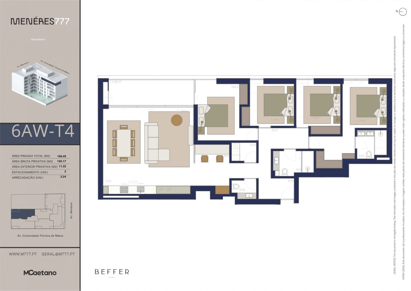 O Menéres 777 é um projeto residencial de caráter exclusivo, localizado na Avenida Menéres, junto à Avenida Comendador Ferreira de Matos. A apenas cinco minutos da praia, distingue-se pela sua arquitetura elegante, acabamentos de elevada qualidade e uma localização de excelência, ideal para quem procura conforto e sofisticação em pleno Matosinhos Sul. No Menéres 777, o bem-estar dos residentes assume um papel central. Pensado ao detalhe para proporcionar uma experiência de vida superior, o empreendimento integra um jardim privado, perfeito para momentos de descanso e convívio, bem como um estacionamento exclusivo que garante comodidade e segurança em qualquer altura. O projeto é ainda valorizado por um rooftop com vistas amplas e por uma sala de condomínio dedicada aos residentes. O edifício é composto por 46 apartamentos, com tipologias de T1 a T4. O Menéres 777 posiciona-o no epicentro da transformação de Matosinhos Sul, uma zona marcada por novos empreendimentos, espaços verdes contemporâneos e uma oferta diversificada de serviços e restauração de referência. Aqui, tudo está ao seu alcance, desde lazer a conveniência, facilitando o quotidiano. O paredão da Praia de Matosinhos estende-se ao longo de 14 km, ligando a cidade à icónica Ponte D. Luís, criando o cenário ideal para relaxar ou desfrutar de passeios de bicicleta em família. Ao longo do percurso, surgem locais singulares e restaurantes à beira-mar, onde a paisagem marítima e a natureza proporcionam experiências memoráveis. A poucos minutos do empreendimento, o Parque da Cidade apresenta-se como um verdadeiro oásis urbano. Com extensas áreas verdes, lagoas e percursos pedonais, é o espaço ideal para caminhadas tranquilas, prática de exercício físico ou simplesmente para desfrutar de momentos de serenidade em contacto com a natureza, no centro da cidade. Entre em contacto para obter mais informações.