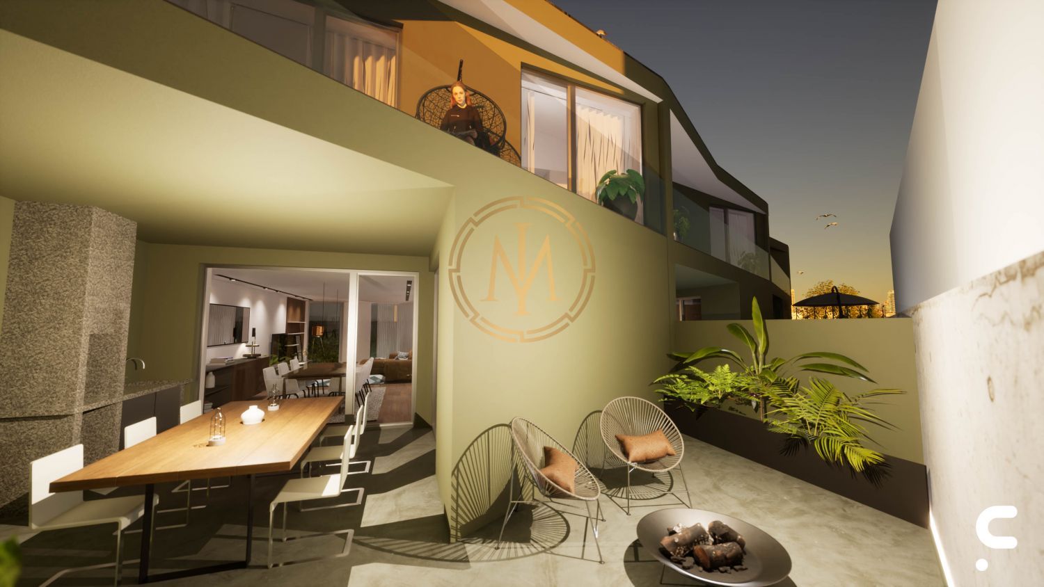 Novo complexo habitacional em Canidelo, Vila Nova de Gaia, onde o equilíbrio entre a centralidade de morar numa grande cidade e o usufruto de amplos espaços verdes, caracterizam este empreendimento. Composto por 4 moradias em banda em condomínio privado, com piscina comum, garagens individuais, áreas verdes, amplos terraços, varandas e pátios ingleses. As habitações variam entre os 370 a 450m² O condomínio conta com aproximadamente 630m2 de áreas verdes para desfrutar, que inclui ainda uma piscina comum. O logradouro comum é um ótimo complemento aos espaços exteriores privados que cada habitação já contempla. Cada moradia, além de contar com áreas habitacionais privadas generosas, amplos terraços, pátios e varandas, conta ainda com uma garagem individual, com acesso direto à habitação. O acesso às garagens é feito através de uma entrada e corredor comum que distribui pelas 4 garagens. Além disso, algumas habitações podem contar ainda com áreas verdes privadas Uma arquitetura com personalidade única que se traduz num conjunto que se destaca na paisagem que o circunscreve. A arquitetura singular, o design e a qualidade dos elementos construtivos vão permitir-lhe que sinta um novo conceito de viver em Canidelo. Moradias com design contemporâneo, dotadas de terraços e varandas amplas, com churrasqueira, que se traduzem na sua escolha de eleição. Pode contar ainda com uma seleção de materiais de elevada qualidade que privilegiam o conforto e a funcionalidade, dando um acabamento de luxo a cada habitação, e ao conjunto. Não perca esta oportunidade, marque já a sua visita. IM HOME, é uma agência imobiliária portuguesa, presente no mercado nacional há 2 anos, especializada no mercado residencial prime e faz parte do Grupo IM COMPANY com 14 anos de trabalho e dedicação no Porto e Região, nas áreas de Arquitetura, Construção, Engenharia e Decoração.
