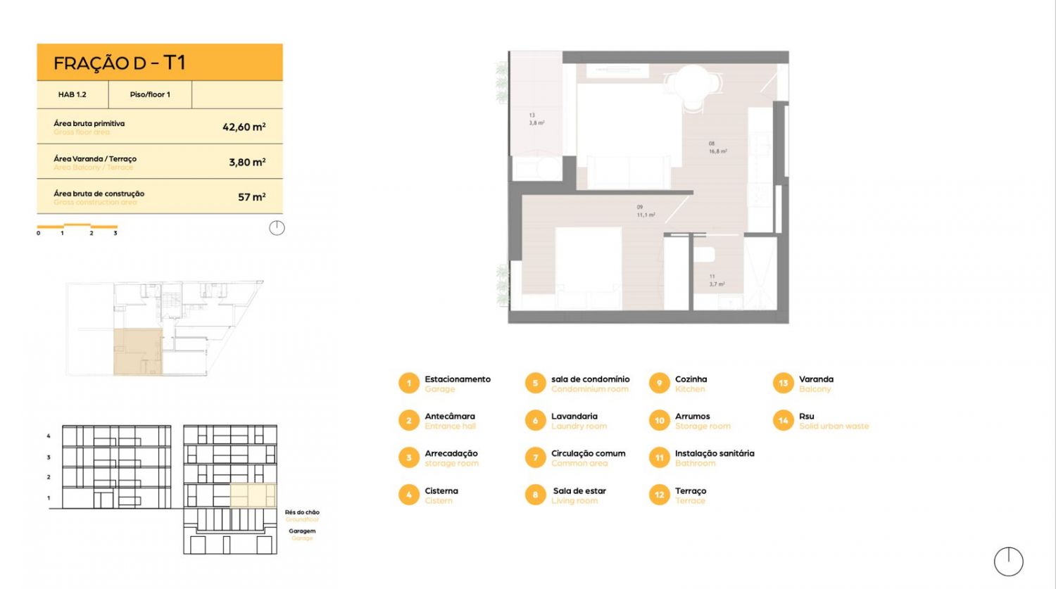 Apartamento T1 em Matosinhos Sul, próximo à praia, com varanda e arrumos Este fantástico empreendimento, contará com apenas 17 frações entre T1 e T1+1. Os dois apartamentos ao nível do rés-do-chão possuem amplos terraços. Nas restantes frações do edifício existem varandas em todas as tipologias, promovendo luz natural e uma relação contínua com o exterior. O design foi criado e pensado para famílias modernas, jovens casais e investidores que procuram um produto sólido, bem localizado e com uma assinatura arquitetónica distinta. Para isso optou-se por uma estética sofisticada e funcional. O edifício localiza-se no coração de Matosinhos Sul, bem próximo à praia de Matosinhos servido de todos os tipos de transportes e comércio. É o local ideal para investir promovendo retorno e valorização contínua dada a sua localização privilegiada. Data de conclusão: Primeiro trimestre de 2028 Mapa de Acabamentos: ESTRUTURA Estrutura em betão armado, reticulado de pilares e vigas, com lajes maciças e aligeiradas, calculada segundo as normas regulamentares em vigor, incluindo a segurança ao vento e sismos. PAREDES As paredes exteriores são compostas isolamento sistema ETICS, pontualmente revestidas com azulejo biselado e/ou folha de alumínio lacado; As paredes interiores serão em gesso cartonado. PAVIMENTOS Enchimento de pisos interiores com betão leve, para envolvimento de todas as redes técnicas (redes de águas, esgotos, eletricidade, telefones, gás e climatização); Aplicação de tela de polietileno para isolamento termo acústico. COBERTURA Sistema de cobertura plana com isolamento térmico e acabamento em godo. OUTROS Estacionamento privativo no interior do lote, com acesso de elevador monta-auto, controlado com comando à distância. CONFORTO E SEGURANÇA Elevador acessível com capacidade para 8 pessoas, com funcionamento silencioso, portas automáticas e iluminação por LEDs. Bomba de calor para produção de AQS e climatização por Ar Condicionado; Estores exteriores em alumínio com poliestireno expandido; Caixilharia de alumínio com vidro duplo e corte térmico; Guarda-corpos em aço galvanizado por imersão a quente lacado à cor da caixilharia; Isolamento acústico em paredes entre frações com lã mineral e, nos pavimentos, com tela acústica de polietileno; Ventilação mecânica nas instalações sanitárias; Vídeo porteiro; Instalação de redes ITED; Porta de segurança na entrada de cada habitação CARPINTARIAS Mobiliário: Armários lacados; Portas: Portas interiores lacadas à cor branca; porta de segurança, lacada à cor branca; Rodapés: No hall de entrada, rodapés em MDF lacados à cor branca; nos apartamentos, rodapés em MDF lacados à cor dos armários. COZINHA Mobiliário: Armários lacados, e bancada do tipo Silestone; Pavimento: Pavimento vinílico, acabamento carvalho tipo Tarkett; Parede: Gesso cartonado, pintado à cor branca, e com revestimento em azulejo liso, do tipo Primus Vitória; Teto: Gesso cartonado hidrófugo, pintado à cor branca; Equipamentos: Exaustor de embutir; placa; forno de encastrar; combinado de encastrar e máquina de lavar louça; Acessórios: Balde do lixo em calhas de correr por baixo do lavatório. SALA / QUARTOS Pavimento: Pavimento vinílico, acabamento carvalho tipo Tarkett; Paredes: Paredes interiores com placas de gesso cartonado ou em pladur, pintada à cor branca; Teto: Gesso cartonado, pintado à cor branca. INSTALAÇÃO SANITÁRIA Pavimento: Pavimento vinílico, acabamento carvalho tipo Tarkett; Paredes: Revestimento em azulejo liso, do tipo Primus Vitória; Teto: Gesso cartonado hidrófugo, pintado à cor branca; Louças: Lavatório, sanita suspensa, e base de duche, aplicada complanar com o pavimento, do tipo Sanindusa; Bancada: Móvel suspenso com lavatório, com bancada tipo Silestone; Acessórios: Espelho e resguardo de duche em vidro temperado 8mm. Não perca a oportunidade e fale connosco para conhecer este apartamento incrível. IM HOME, é uma agência imobiliária portuguesa, presente no mercado nacional há 2 anos, especializada no mercado residencial prime e faz parte do Grupo IM COMPANY com 14 anos de trabalho e dedicação no Porto e Região, nas áreas de Arquitetura, Construção, Engenharia e Decoração.