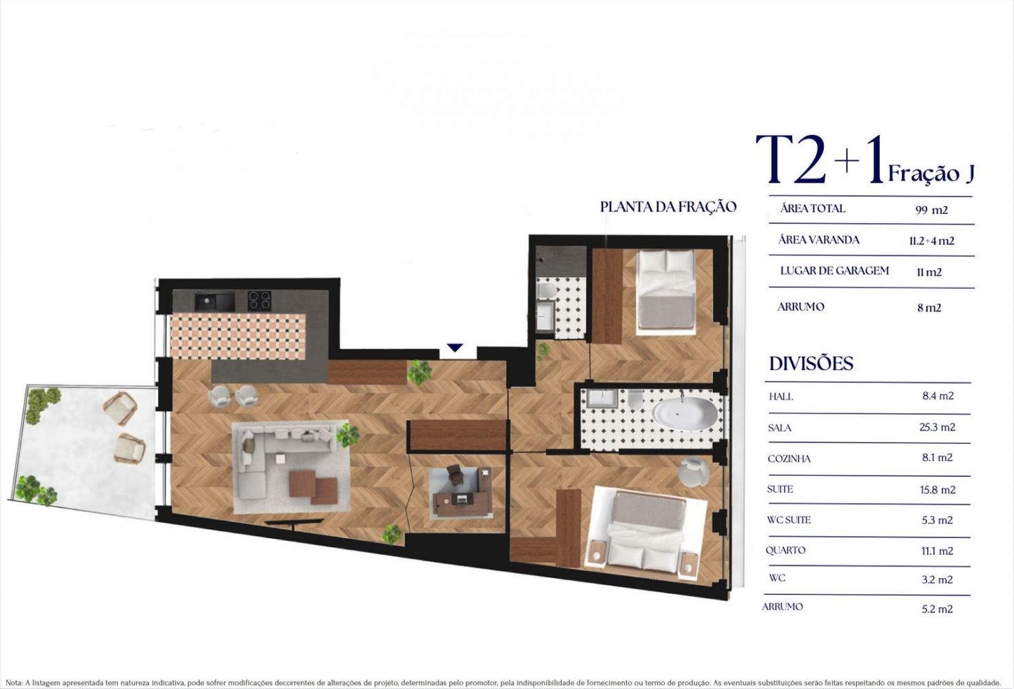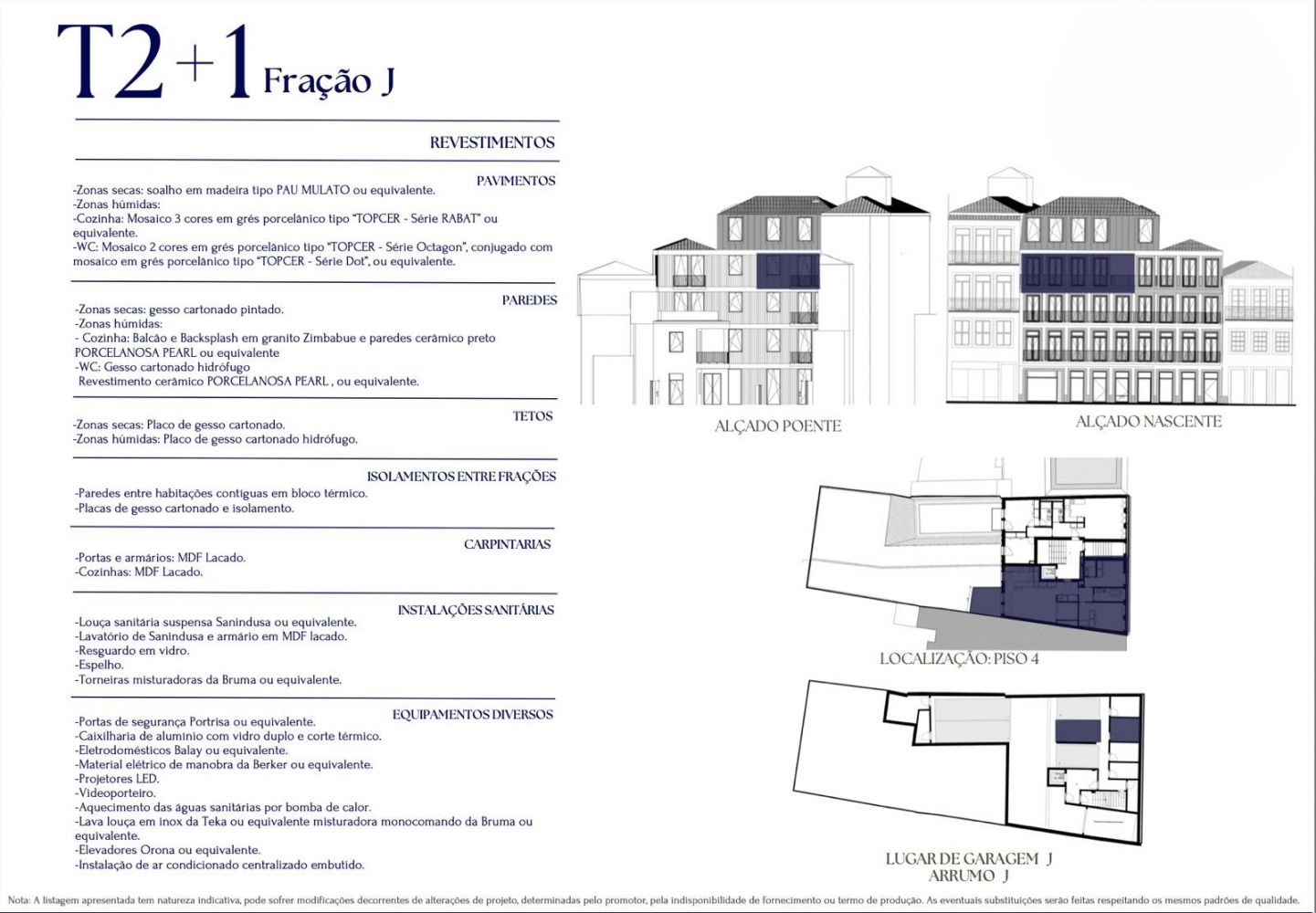 Apartamento T2+1 em Cedofeita com lugar de garagem e arrumo. Este fantástico imóvel, situa-se ao nível do quarto piso e contempla uma suite, um quarto, um wc completo, um escritório. No coração de uma das zonas mais autênticas e desejadas do Porto nasce o Condomínio, um projeto que respeita a história, valoriza o presente e projeta um novo modo de viver a cidade. Resultado da reconstrução e ampliação de três edifícios históricos, este condomínio foi cuidadosamente concebido para quem procura mais do que um apartamento: qualidade de vida, centralidade e emoção. Um edifício contemporâneo com 5 pisos, que integra 1 espaço comercial e 9 apartamentos exclusivos, em que conforto, funcionalidade e elegância convivem em perfeita harmonia. Todos os apartamentos dispõem de arrumo e lugar de estacionamento, com lugares duplos para os T3, um verdadeiro luxo numa localização tão central. Com metro (Estação da Lapa a menos de 5 minutos), autocarros e uma rede completa de serviços, está rodeado por referências incontornáveis da cidade: a Igreja Românica de Cedofeita, a Faculdade de Direito da Universidade do Porto, o Hospital de Santo António, o Hospital Lusíadas e a Rotunda da Boavista. A obra teve início no final de 2024 e estará concluída no final de 2026, dando forma a um projeto que alia investimento seguro a um estilo de vida urbano, sofisticado e emocionalmente inspirador. Um lugar onde a história do Porto encontra o seu futuro — e onde a sua vida pode começar um novo capítulo. MAPA DE ACABAMENTOS: PAVIMENTOS -Zonas secas: soalho em madeira tipo PAU MULATO ou equivalente. -Zonas húmidas: -Cozinha: Mosaico 3 cores em grés porcelânico tipo “TOPCER - Série RABAT” ou equivalente. -WC: Mosaico 2 cores em grés porcelânico tipo “TOPCER - Série Octagon”, conjugado com mosaico em grés porcelânico tipo “TOPCER - Série Dot”, ou equivalente. PAREDES -Zonas secas: gesso cartonado pintado. -Zonas húmidas: - Cozinha: Balcão e Backsplash em granito Zimbabue e paredes cerâmico preto PORCELANOSA PEARL ou equivalente -WC: Gesso cartonado hidrófugo Revestimento cerâmico PORCELANOSA PEARL , ou equivalente. TETOS -Zonas secas: Placo de gesso cartonado. -Zonas húmidas: Placo de gesso cartonado hidrófugo. ISOLAMENTO ENTRE FRAÇÕES -Paredes entre habitações contíguas em bloco térmico. -Placas de gesso cartonado e isolamento. CARPINTARIAS -Portas e armários: MDF lacado. -Cozinhas: MDF Lacado. INSTALAÇÕES SANITÁRIAS -Louça sanitária suspensa Sanindusa ou equivalente. -Lavatório de Sanindusa e armário em MDF lacado. -Resguardo em vidro. -Espelho. -Torneiras misturadoras da Bruma ou equivalente. EQUIPAMENTOS DIVERSOS -Portas de segurança Portrisa ou equivalente. -Caixilharia de alumínio com vidro duplo e corte térmico. -Eletrodomésticos Balay ou equivalente. -Material elétrico de manobra da Berker ou equivalente. -Projetores LED. -Videoporteiro. -Aquecimento das águas sanitárias por bomba de calor. -Lava louça em inox da Teka ou equivalente, misturadora monocomando da Bruma ou equivalente. -Elevadores Orona ou equivalente. -Instalação de ar condicionado centralizado embutido. Entre em contacto para mais informações.