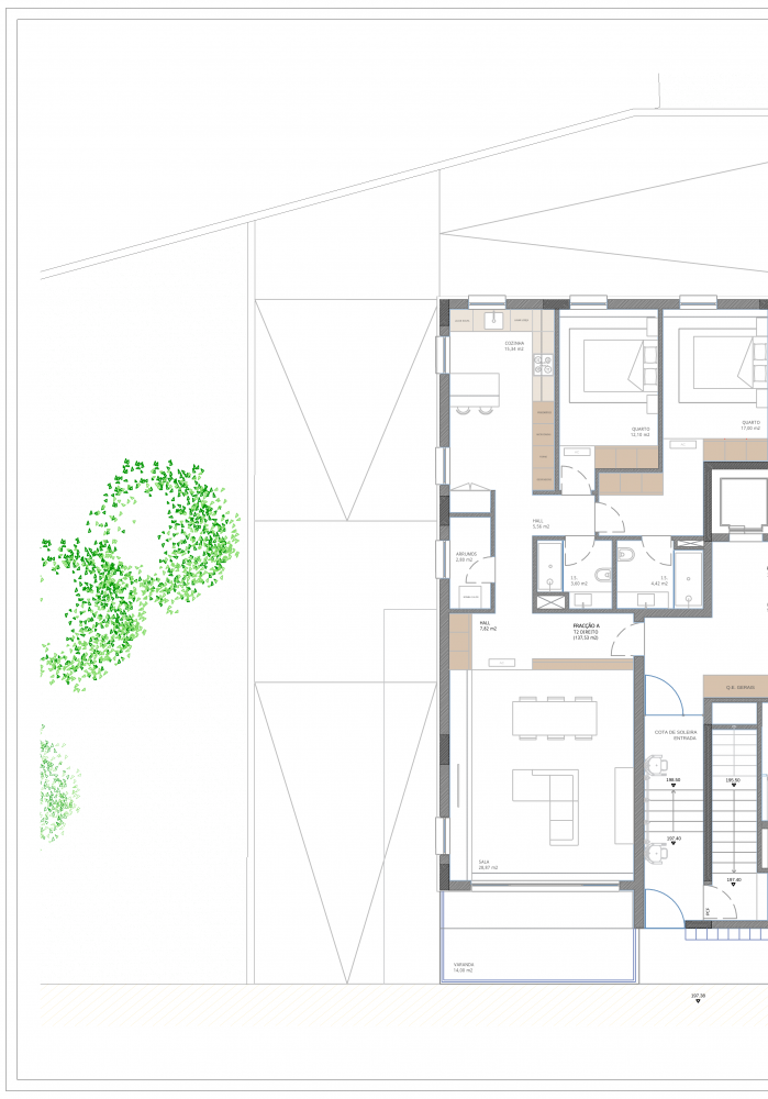 Fantástico apartamento T2 em Nogueira, ao nível do primeiro piso com uma suite e mais uma casa de banho completa, com lugar de garagem e varanda. Este empreendimento possui apenas dois apartamentos por piso, tornando-o tranquilo e privado. Descubra um novo padrão de conforto, qualidade e tranquilidade nestes modernos apartamentos, localizados numa das zonas mais valorizadas de Nogueira, Braga. Inserido num empreendimento exclusivo para habitação, este projeto distingue-se pela sua arquitetura contemporânea, qualidade construtiva superior e ambiente residencial calmo. Cada apartamento foi cuidadosamente concebido para proporcionar bem-estar, funcionalidade e eficiência. ´ Os acabamentos refletem um elevado padrão de qualidade, destacando-se o pavimento flutuante FINSA AC5 “Roble Breno”, tetos falsos com iluminação LED, caixilharia em alumínio com rutura térmica e um eficaz isolamento acústico e térmico. As áreas interiores são amplas e luminosas. A sala beneficia de excelente luz natural, recuperador de calor e acesso a varanda com churrasqueira, ideal para momentos de lazer. Os quartos dispõem de roupeiros embutidos, garantindo organização e conforto. A cozinha é totalmente mobilada e equipada com eletrodomésticos de referência, incluindo forno, micro-ondas, placa vitrocerâmica, exaustor, máquina de lavar loiça e frigorífico. As instalações sanitárias apresentam um design moderno, com louças suspensas, sistema de ventilação mecânica controlada (VMC) e mobiliário contemporâneo. Para maior comodidade e eficiência energética, os apartamentos contam com ar condicionado, bomba de calor para aquecimento de águas sanitárias e garagem fechada. Localização Situados na freguesia de Nogueira, estes apartamentos beneficiam de uma localização privilegiada, próxima de todo o tipo de serviços e acessos, como escolas, farmácia, hospital privado de Braga, hipermercados e instituições bancárias. Distâncias de referência: 5 minutos do centro de Braga 15 minutos do Gerês 20 minutos de Guimarães 30 minutos do Porto Uma oportunidade única para quem procura um apartamento novo, moderno e confortável, numa zona tranquila e central de Braga. Contacte-nos para mais informações.