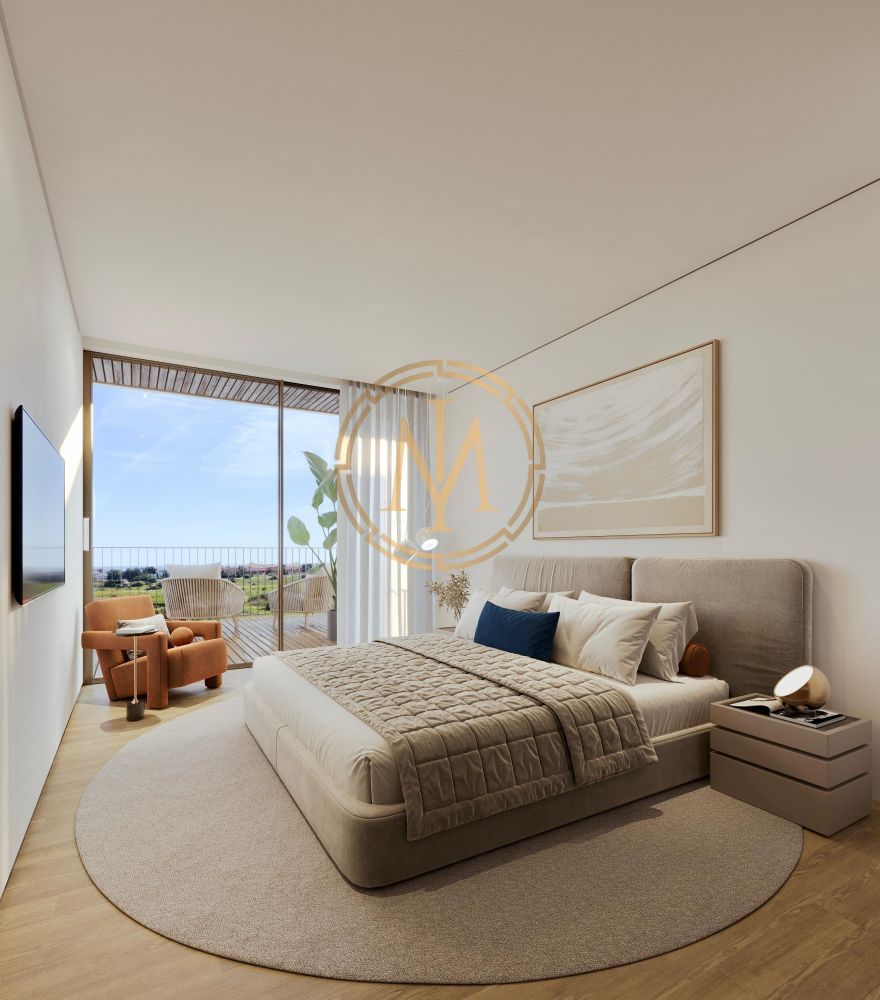 Apartamento T2 de luxo, próximo à Marina de Vilamoura com 119,09 m2 de área útil e 37,39m2 de área exterior, dividida por duas varandas. Este fantástico apartamento situa-se ao nível do segundo piso piso, possui uma master suite e uma suite, e ainda conta com dois lugares de estacionamento e arrumo. Ao nível do empreendimento, este possui lounge multifuncional, piscina exterior, ginásio, sala de massagens e sauna. O projeto é da autoria do prestigiado arquiteto João Vieira, que carateriza o empreendimento como "(...) um projeto atemporal, sofisticado e elegante que explora os dois elementos valiosos do Algarve, a luz e o mar." A Localização: Vilamoura é um local de excelência, reconhecido pelo seu ambiente exclusivo e elevada qualidade de vida, situado a apenas 30 minutos do Aeroporto de Faro. Com uma marina distinguida, campos de golfe de renome internacional, praias magníficas e uma vasta seleção de restaurantes e opções de lazer, este destino alia a beleza costeira a um estilo contemporâneo e sofisticado. Perfeito para quem valoriza conforto, segurança e um estilo de vida premium, Vilamoura proporciona uma experiência única e incomparável. Este imóvel está cuidadosamente situado: a 200m da reserva natural a 350/950m da Clinica/Hospital a 600m da Academia de Ténis e Padel a 1.2km da Marina de Vilamoura a 1.4 de Hotéis de 5 estrelas a 1.9km do Casino de Vilamoura a 2km da praia da Falésia e Vilamoura a 3.8/4.3 km dos campos de golfe a 6.9km do Centro Hípico a 7km do Colégio Internacional MAPA DE ACABAMENTOS: EXTERIOR - Revestimento de fachadas em pedra natural, do tipo Travertino; - Caixilharia minimalista com corte térmico, vidro duplo incolor com proteção solar; - Pavimento e teto das varandas em deck de madeira. ÁREAS COMUNS - Revestimento em pedra natural ou compósito. ELEVADORES - Elevadores da Schmitt, Otis, ou equivalente. GINÁSIO - Pavimento em vinílico de cor clara; - Paredes em gesso cartonado, pintadas a cor clara, com espelhos; - Teto revestido com ripado de madeira; - Iluminação embutida com tecnologia LED. SALAS DE ESTAR, CORREDORES, QUARTOS - Pavimento em soalho estratificado de madeira de carvalho; - Paredes em dupla placa de gesso cartonado, com isolamento acústico; - Teto falso em gesso cartonado; - Sancas para cortinas com iluminação indireta em LED; - Portas em madeira a toda a altura, acabamento lacado, dobradiças ocultas; - Armários em MDF, acabamento lacado; - Blackouts elétricos nos quartos; - Iluminação embutida com tecnologia LED. INSTALAÇÕES SANITÁRIAS - Pavimento em soalho estratificado de madeira de carvalho (I. S. Social); - Pavimento, paredes e tampo do tipo NEOLITH ou equivalente (I. S. Suites); - Loiças sanitárias suspensas; - Pavimento radiante elétrico nas I.S.; - Armários em MDF hidrófugo, com acabamento lacado ou folheado; - Iluminação embutida com tecnologia LED. CLIMATIZAÇÃO, SEGURANÇA E DOMÓTICA CLIMATIZAÇÃO | AQS (Água Quente Sanitária) - Sistema de ar condicionado por condutas; - Pavimento radiante elétrico nas instalações sanitárias; - Bomba de calor. SEGURANÇA - Sistema de videovigilância nas zonas comuns - Sistema automático de deteção de intrusão – alarme; - Sistema automático de deteção de inundação nas Cozinhas, Lavandarias e Instalações Sanitárias; - Sistema automático de deteção de incêndio nas Zonas Comuns e na Garagem/Estacionamento. DOMÓTICA - Painel táctil para controlo centralizado de alarme, iluminação e climatização. Entre em contacto para mais informações.