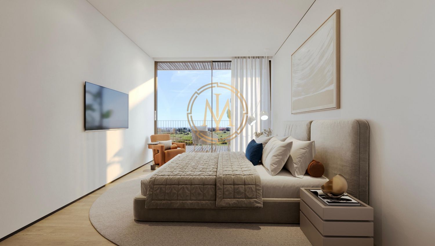 Apartamento T2 de luxo, próximo à Marina de Vilamoura com 107,90 m2 de área útil e 22,50m2 de área exterior, dividida por duas varandas. Este fantástico apartamento situa-se ao nível do primeiro piso, possui uma master suite e uma suite, e ainda conta com dois lugares de estacionamento e arrumo. Ao nível do empreendimento, este possui lounge multifuncional, piscina exterior, ginásio, sala de massagens e sauna. O projeto é da autoria do prestigiado arquiteto João Vieira, que carateriza o empreendimento como "(...) um projeto atemporal, sofisticado e elegante que explora os dois elementos valiosos do Algarve, a luz e o mar." A Localização: Vilamoura é um local de excelência, reconhecido pelo seu ambiente exclusivo e elevada qualidade de vida, situado a apenas 30 minutos do Aeroporto de Faro. Com uma marina distinguida, campos de golfe de renome internacional, praias magníficas e uma vasta seleção de restaurantes e opções de lazer, este destino alia a beleza costeira a um estilo contemporâneo e sofisticado. Perfeito para quem valoriza conforto, segurança e um estilo de vida premium, Vilamoura proporciona uma experiência única e incomparável. Este imóvel está cuidadosamente situado: a 200m da reserva natural a 350/950m da Clinica/Hospital a 600m da Academia de Ténis e Padel a 1.2km da Marina de Vilamoura a 1.4 de Hotéis de 5 estrelas a 1.9km do Casino de Vilamoura a 2km da praia da Falésia e Vilamoura a 3.8/4.3 km dos campos de golfe a 6.9km do Centro Hípico a 7km do Colégio Internacional MAPA DE ACABAMENTOS: EXTERIOR - Revestimento de fachadas em pedra natural, do tipo Travertino; - Caixilharia minimalista com corte térmico, vidro duplo incolor com proteção solar; - Pavimento e teto das varandas em deck de madeira. ÁREAS COMUNS - Revestimento em pedra natural ou compósito. ELEVADORES - Elevadores da Schmitt, Otis, ou equivalente. GINÁSIO - Pavimento em vinílico de cor clara; - Paredes em gesso cartonado, pintadas a cor clara, com espelhos; - Teto revestido com ripado de madeira; - Iluminação embutida com tecnologia LED. SALAS DE ESTAR, CORREDORES, QUARTOS - Pavimento em soalho estratificado de madeira de carvalho; - Paredes em dupla placa de gesso cartonado, com isolamento acústico; - Teto falso em gesso cartonado; - Sancas para cortinas com iluminação indireta em LED; - Portas em madeira a toda a altura, acabamento lacado, dobradiças ocultas; - Armários em MDF, acabamento lacado; - Blackouts elétricos nos quartos; - Iluminação embutida com tecnologia LED. INSTALAÇÕES SANITÁRIAS - Pavimento em soalho estratificado de madeira de carvalho (I. S. Social); - Pavimento, paredes e tampo do tipo NEOLITH ou equivalente (I. S. Suites); - Loiças sanitárias suspensas; - Pavimento radiante elétrico nas I.S.; - Armários em MDF hidrófugo, com acabamento lacado ou folheado; - Iluminação embutida com tecnologia LED. CLIMATIZAÇÃO, SEGURANÇA E DOMÓTICA CLIMATIZAÇÃO | AQS (Água Quente Sanitária) - Sistema de ar condicionado por condutas; - Pavimento radiante elétrico nas instalações sanitárias; - Bomba de calor. SEGURANÇA - Sistema de videovigilância nas zonas comuns - Sistema automático de deteção de intrusão – alarme; - Sistema automático de deteção de inundação nas Cozinhas, Lavandarias e Instalações Sanitárias; - Sistema automático de deteção de incêndio nas Zonas Comuns e na Garagem/Estacionamento. DOMÓTICA - Painel táctil para controlo centralizado de alarme, iluminação e climatização. Entre em contacto para mais informações.