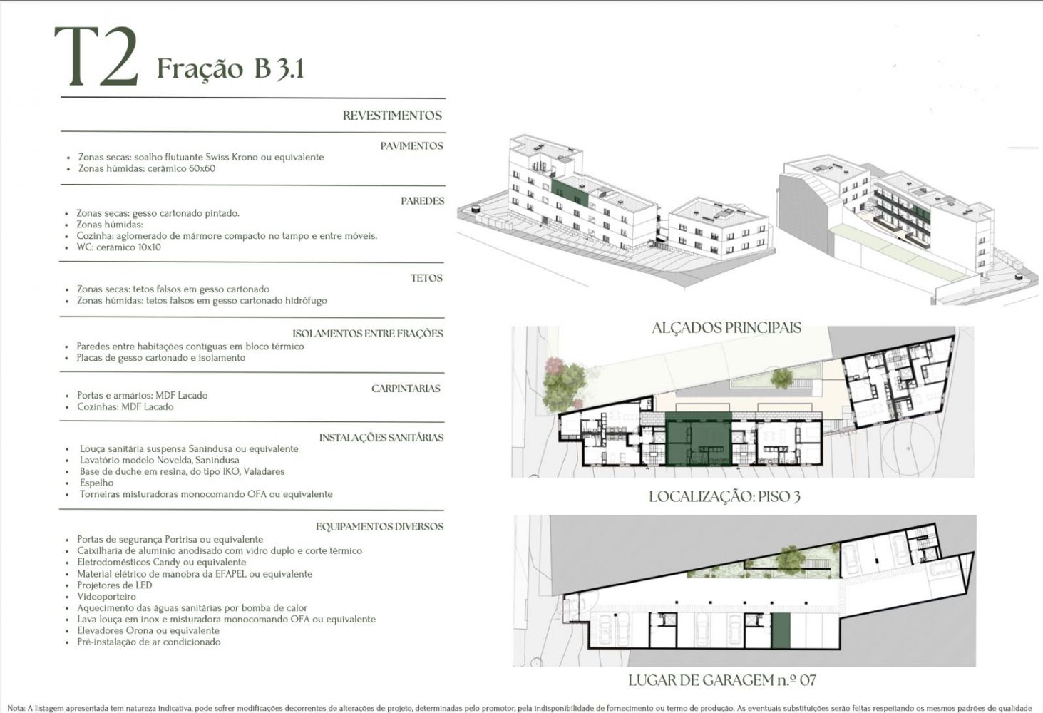 Apartamento T2 com varanda e lugar de garagem, inserido ao nível do terceiro piso num condomínio residencial. Este projeto habitacional situado em Campanhã, numa zona emergente da cidade do Porto, junto ao Parque Oriental e nas proximidades da futura linha de metro Estádio do Dragão – Gondomar. Beneficiando de uma localização estratégica, o empreendimento apresenta excelentes acessibilidades rodoviárias, através da A43 e da Circunvalação, bem como uma eficaz rede de transportes públicos, nomeadamente Metro e STCP (Linha 400). O condomínio é composto por três edifícios interligados, integrando um total de 18 apartamentos, com tipologias T0 a T2, pensados para responder às exigências de conforto e funcionalidade da vida urbana contemporânea. Dispõe ainda de uma cave comum destinada a estacionamento, garantindo maior comodidade aos residentes. À semelhança da zona ocidental da cidade do Porto, a zona oriental é igualmente valorizada pela presença de um extenso espaço verde ao longo das margens do Rio Tinto. O Parque Oriental desenvolve-se como um parque linear desde o Freixo até ao Pego Negro, destacando-se pela sua elevada qualidade estética e paisagística, promovendo o usufruto de um rio despoluído e ambientalmente saudável. Este parque foi projetado pelo arquiteto paisagista Sidónio Pardal, cujo objetivo foi transformar um espaço compartimentado e acidentado num contínuo natural, relvado e arborizado, dotado de uma rede de caminhos concebidos para o lazer e o descanso. Na envolvente imediata localizam-se dois projetos estruturantes da cidade do Porto: o Terminal Intermodal de Campanhã, principal hub ferroviário e rodoviário da cidade, e o M-ODU – Matadouro do Porto, atualmente em fase final de construção, que integrará espaços de restauração, escritórios, galerias de arte e museus, com capacidade para acolher mais de 2.300 pessoas. Mapa de Acabamentos Pavimentos •Zonas secas: soalho flutuante Swiss Krono ou equivalente •Zonas húmidas: revestimento cerâmico 60x60 Paredes •Zonas secas: gesso cartonado pintado •Zonas húmidas: •Cozinhas: aglomerado de mármore compacto no tampo e entre móveis •Instalações sanitárias: cerâmica 10x10 Tetos •Zonas secas: tetos falsos em gesso cartonado •Zonas húmidas: tetos falsos em gesso cartonado hidrófugo Isolamentos •Paredes entre habitações contíguas em bloco térmico, com placas de gesso cartonado e isolamento Carpintarias •Portas e armários: MDF lacado •Cozinhas: MDF lacado Instalações Sanitárias •Louça sanitária suspensa Sanindusa ou equivalente •Lavatório modelo Novelda – Sanindusa •Base de duche em resina tipo IKO – Valadares •Espelho •Torneiras misturadoras monocomando OFA ou equivalente Equipamentos Diversos •Portas de segurança Portrisa ou equivalente •Caixilharia de alumínio anodizado com vidro duplo e corte térmico •Eletrodomésticos Candy ou equivalente •Material elétrico de manobra EFAPEL ou equivalente •Iluminação LED •Videoporteiro •Aquecimento de águas sanitárias por bomba de calor •Lava-loiça em inox com misturadora monocomando OFA ou equivalente •Elevadores Orona ou equivalente •Pré-instalação de ar condicionado Entre em contacto para mais informações