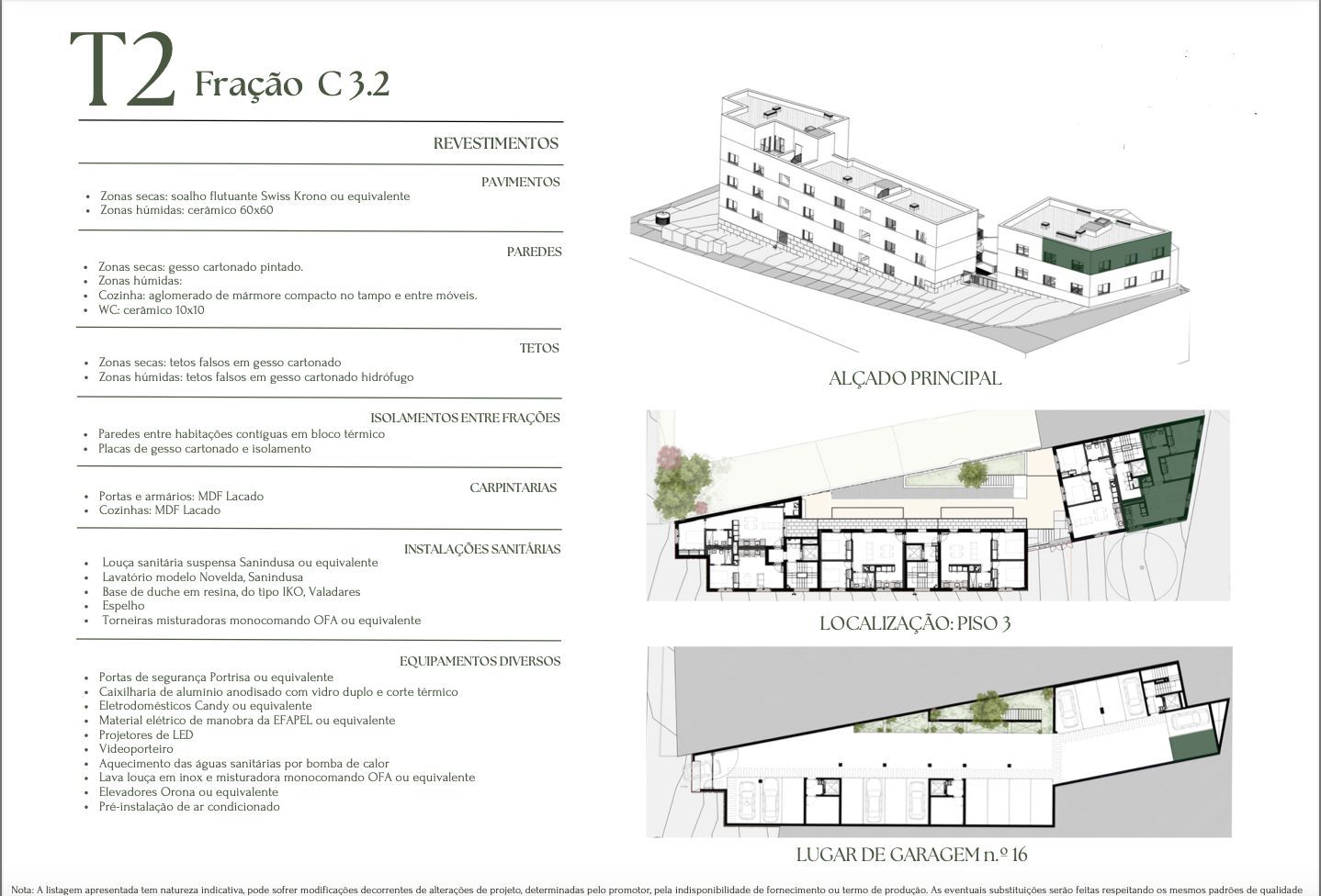Apartamento T2 com lugar de garagem, inserido ao nível do terceiro, e último piso, num condomínio residencial. Este projeto habitacional situado em Campanhã, numa zona emergente da cidade do Porto, junto ao Parque Oriental e nas proximidades da futura linha de metro Estádio do Dragão – Gondomar. Beneficiando de uma localização estratégica, o empreendimento apresenta excelentes acessibilidades rodoviárias, através da A43 e da Circunvalação, bem como uma eficaz rede de transportes públicos, nomeadamente Metro e STCP (Linha 400). O condomínio é composto por três edifícios interligados, integrando um total de 18 apartamentos, com tipologias T0 a T2, pensados para responder às exigências de conforto e funcionalidade da vida urbana contemporânea. Dispõe ainda de uma cave comum destinada a estacionamento, garantindo maior comodidade aos residentes. À semelhança da zona ocidental da cidade do Porto, a zona oriental é igualmente valorizada pela presença de um extenso espaço verde ao longo das margens do Rio Tinto. O Parque Oriental desenvolve-se como um parque linear desde o Freixo até ao Pego Negro, destacando-se pela sua elevada qualidade estética e paisagística, promovendo o usufruto de um rio despoluído e ambientalmente saudável. Este parque foi projetado pelo arquiteto paisagista Sidónio Pardal, cujo objetivo foi transformar um espaço compartimentado e acidentado num contínuo natural, relvado e arborizado, dotado de uma rede de caminhos concebidos para o lazer e o descanso. Na envolvente imediata localizam-se dois projetos estruturantes da cidade do Porto: o Terminal Intermodal de Campanhã, principal hub ferroviário e rodoviário da cidade, e o M-ODU – Matadouro do Porto, atualmente em fase final de construção, que integrará espaços de restauração, escritórios, galerias de arte e museus, com capacidade para acolher mais de 2.300 pessoas. Mapa de Acabamentos Pavimentos •Zonas secas: soalho flutuante Swiss Krono ou equivalente •Zonas húmidas: revestimento cerâmico 60x60 Paredes •Zonas secas: gesso cartonado pintado •Zonas húmidas: •Cozinhas: aglomerado de mármore compacto no tampo e entre móveis •Instalações sanitárias: cerâmica 10x10 Tetos •Zonas secas: tetos falsos em gesso cartonado •Zonas húmidas: tetos falsos em gesso cartonado hidrófugo Isolamentos •Paredes entre habitações contíguas em bloco térmico, com placas de gesso cartonado e isolamento Carpintarias •Portas e armários: MDF lacado •Cozinhas: MDF lacado Instalações Sanitárias •Louça sanitária suspensa Sanindusa ou equivalente •Lavatório modelo Novelda – Sanindusa •Base de duche em resina tipo IKO – Valadares •Espelho •Torneiras misturadoras monocomando OFA ou equivalente Equipamentos Diversos •Portas de segurança Portrisa ou equivalente •Caixilharia de alumínio anodizado com vidro duplo e corte térmico •Eletrodomésticos Candy ou equivalente •Material elétrico de manobra EFAPEL ou equivalente •Iluminação LED •Videoporteiro •Aquecimento de águas sanitárias por bomba de calor •Lava-loiça em inox com misturadora monocomando OFA ou equivalente •Elevadores Orona ou equivalente •Pré-instalação de ar condicionado Entre em contacto para mais informações