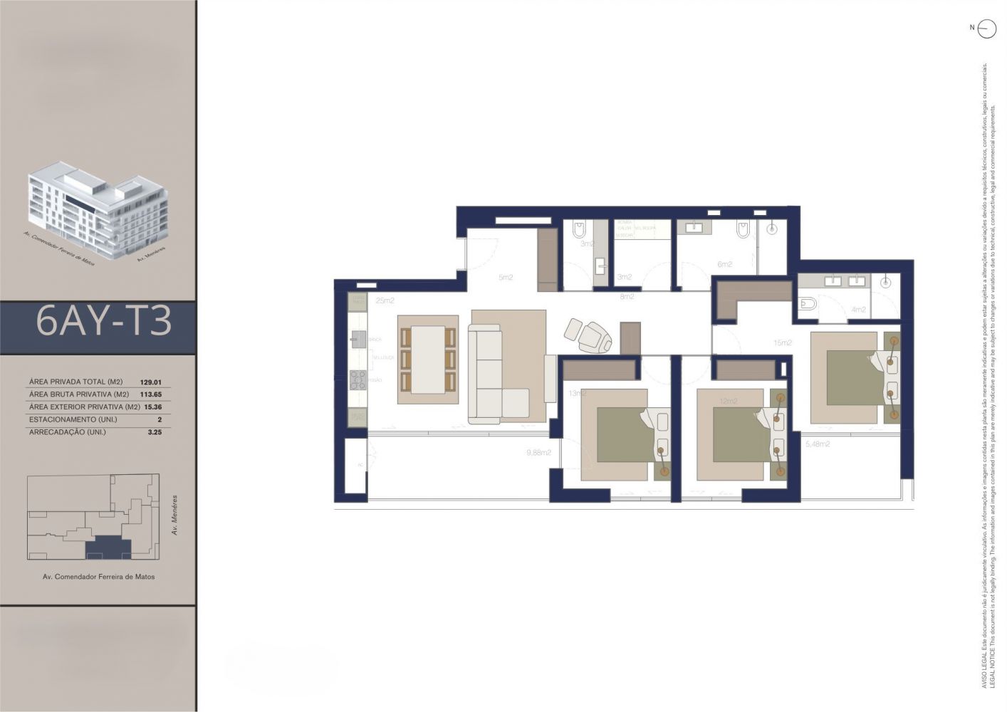 Apartamento T3 de Luxo em Matosinhos Sul inserido no condomínio privado. Este fantástico imóvel possui 1 suíte, 1 quarto com serventia de casa de banho completa, 2 lugar de estacionamento e arrumo. Este projeto residencial de caráter exclusivo. A apenas cinco minutos da praia, distingue-se pela sua arquitetura elegante, acabamentos de elevada qualidade e uma localização de excelência, ideal para quem procura conforto e sofisticação em pleno Matosinhos Sul. No empreendimento, o bem-estar dos residentes assume um papel central. Pensado ao detalhe para proporcionar uma experiência de vida superior, o empreendimento integra um jardim privado, perfeito para momentos de descanso e convívio, bem como um estacionamento exclusivo que garante comodidade e segurança em qualquer altura. O projeto é ainda valorizado por um rooftop com vistas amplas e por uma sala de condomínio dedicada aos residentes. O edifício é composto por 46 apartamentos, com tipologias de T1 a T4. O empreendimento posiciona-o no epicentro da transformação de Matosinhos Sul, uma zona marcada por novos empreendimentos, espaços verdes contemporâneos e uma oferta diversificada de serviços e restauração de referência. Aqui, tudo está ao seu alcance, desde lazer a conveniência, facilitando o quotidiano. O paredão da Praia de Matosinhos estende-se ao longo de 14 km, ligando a cidade à icónica Ponte D. Luís, criando o cenário ideal para relaxar ou desfrutar de passeios de bicicleta em família. Ao longo do percurso, surgem locais singulares e restaurantes à beira-mar, onde a paisagem marítima e a natureza proporcionam experiências memoráveis. A poucos minutos do empreendimento, o Parque da Cidade apresenta-se como um verdadeiro oásis urbano. Com extensas áreas verdes, lagoas e percursos pedonais, é o espaço ideal para caminhadas tranquilas, prática de exercício físico ou simplesmente para desfrutar de momentos de serenidade em contacto com a natureza, no centro da cidade. Entre em contacto para obter mais informações.