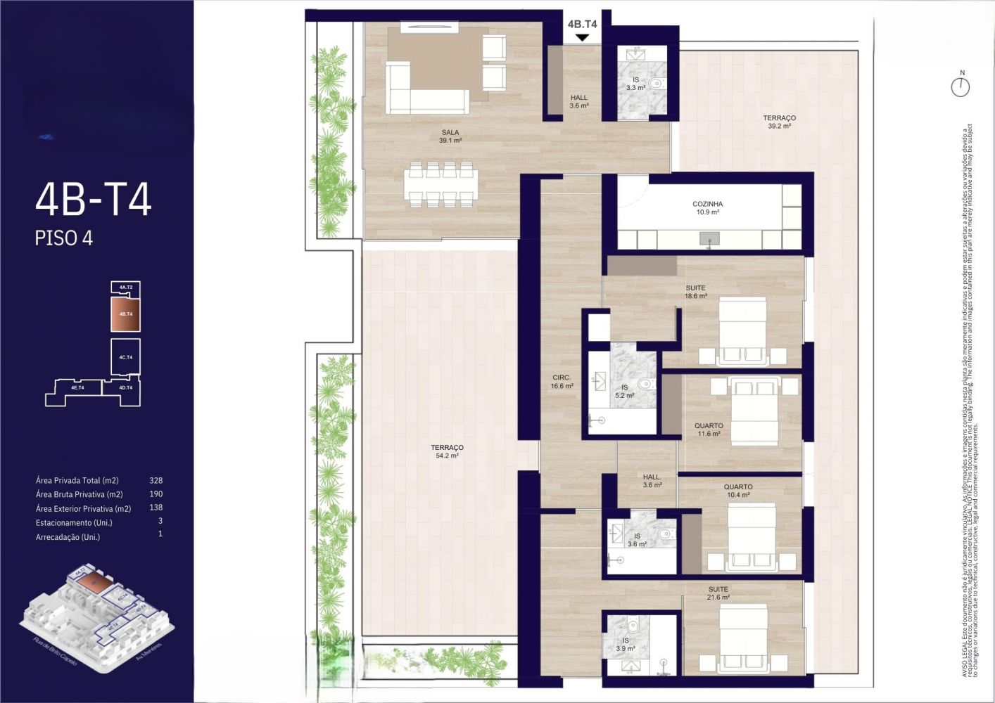 Apartamento T4 Centro de Matosinhos sul com 3 lugares de Estacionamento, dois terraços e arrumos. Este fantástico imóvel situa-se ao nível do último piso e conta com duas suites, dois quartos com serventia de casa de banho completa e casa de banho de serviço. Um condomínio privado localizado em pleno centro de Matosinhos. Exclusivo na região, destaca-se pela sua arquitetura contemporânea e pelos pátios que criam uma ligação privilegiada entre os espaços interiores e exteriores, proporcionando o equilíbrio perfeito entre conforto, privacidade e qualidade de vida. Matosinhos, um refúgio de lazer à beira-mar Matosinhos é uma cidade marcada pela sua história e tradições, aliadas a um estilo de vida dinâmico e a uma identidade jovem e vibrante. Reconhecida como um dos principais polos gastronómicos do país, beneficia da proximidade ao oceano e de uma forte herança culinária, visível nos mais de 600 restaurantes espalhados pelo concelho. Assumindo-se como a capital do lazer, da natureza e da cultura no Norte, Matosinhos oferece uma fusão harmoniosa entre o ambiente urbano e os espaços naturais, convidando à descoberta constante de novas experiências. O projeto afirma-se como um marco distintivo na paisagem urbana de Matosinhos. A sua arquitetura de linhas ousadas e acabamentos sofisticados traduz uma visão contemporânea e elegante, presente tanto no exterior como nos espaços interiores, elevando-o a um patamar de excelência face a outros condomínios privados e edifícios da região. O edifício é composto por 77 apartamentos, 4 pisos, 2 pátios interiores, 2 pisos de estacionamento, sala de condomínio, receção e loja. Contacte-nos para saber mais informações.