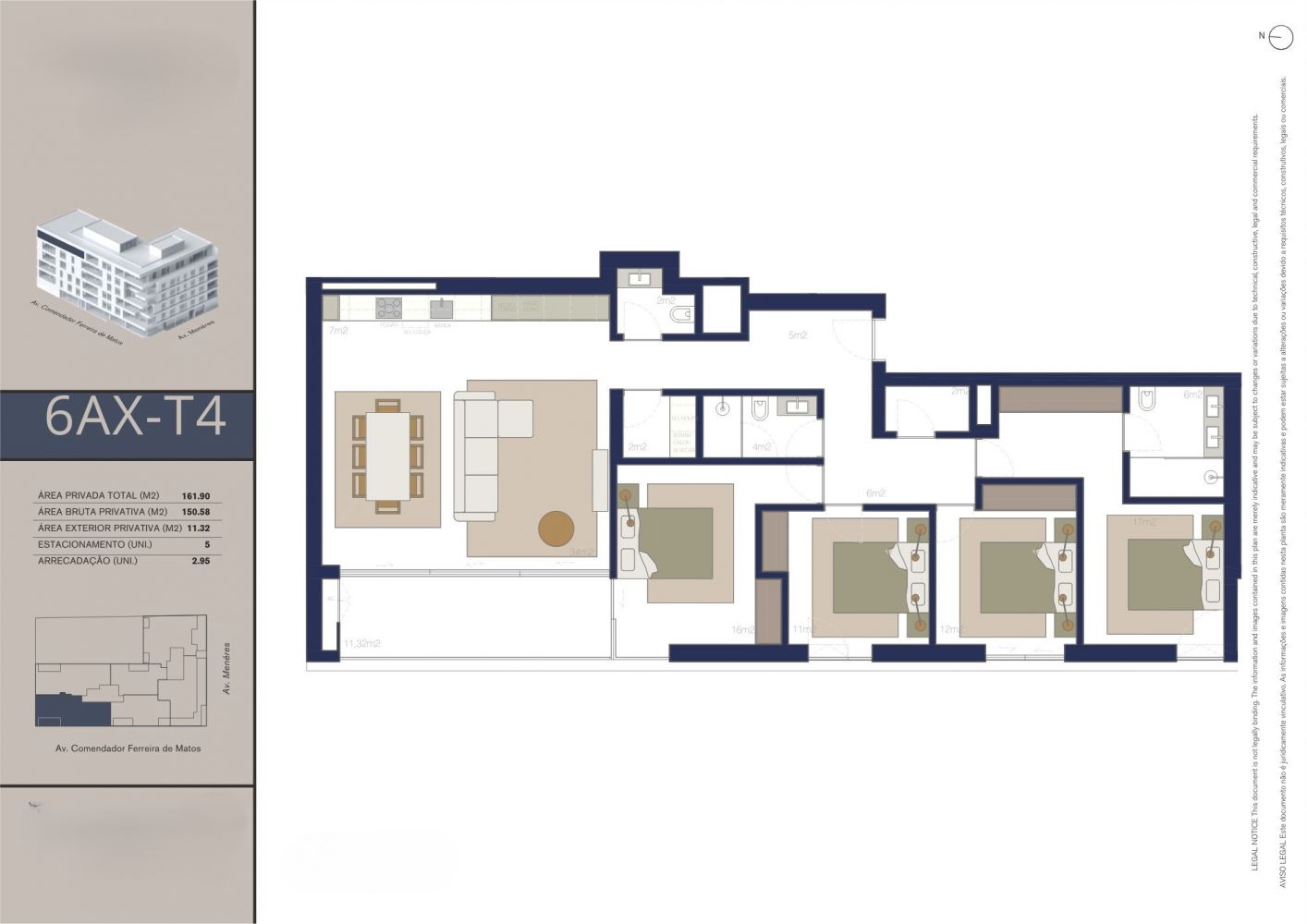 Apartamento T4 de Luxo em Matosinhos Sul inserido no condomínio privado. Este fantástico imóvel possui 1 suíte, 3 quarto com serventia de casa de banho completa, 5 lugar de estacionamento e arrumo. Este projeto residencial de caráter exclusivo. A apenas cinco minutos da praia, distingue-se pela sua arquitetura elegante, acabamentos de elevada qualidade e uma localização de excelência, ideal para quem procura conforto e sofisticação em pleno Matosinhos Sul. No empreendimento, o bem-estar dos residentes assume um papel central. Pensado ao detalhe para proporcionar uma experiência de vida superior, o empreendimento integra um jardim privado, perfeito para momentos de descanso e convívio, bem como um estacionamento exclusivo que garante comodidade e segurança em qualquer altura. O projeto é ainda valorizado por um rooftop com vistas amplas e por uma sala de condomínio dedicada aos residentes. O edifício é composto por 46 apartamentos, com tipologias de T1 a T4. O empreendimento posiciona-o no epicentro da transformação de Matosinhos Sul, uma zona marcada por novos empreendimentos, espaços verdes contemporâneos e uma oferta diversificada de serviços e restauração de referência. Aqui, tudo está ao seu alcance, desde lazer a conveniência, facilitando o quotidiano. O paredão da Praia de Matosinhos estende-se ao longo de 14 km, ligando a cidade à icónica Ponte D. Luís, criando o cenário ideal para relaxar ou desfrutar de passeios de bicicleta em família. Ao longo do percurso, surgem locais singulares e restaurantes à beira-mar, onde a paisagem marítima e a natureza proporcionam experiências memoráveis. A poucos minutos do empreendimento, o Parque da Cidade apresenta-se como um verdadeiro oásis urbano. Com extensas áreas verdes, lagoas e percursos pedonais, é o espaço ideal para caminhadas tranquilas, prática de exercício físico ou simplesmente para desfrutar de momentos de serenidade em contacto com a natureza, no centro da cidade. Entre em contacto para obter mais informações.