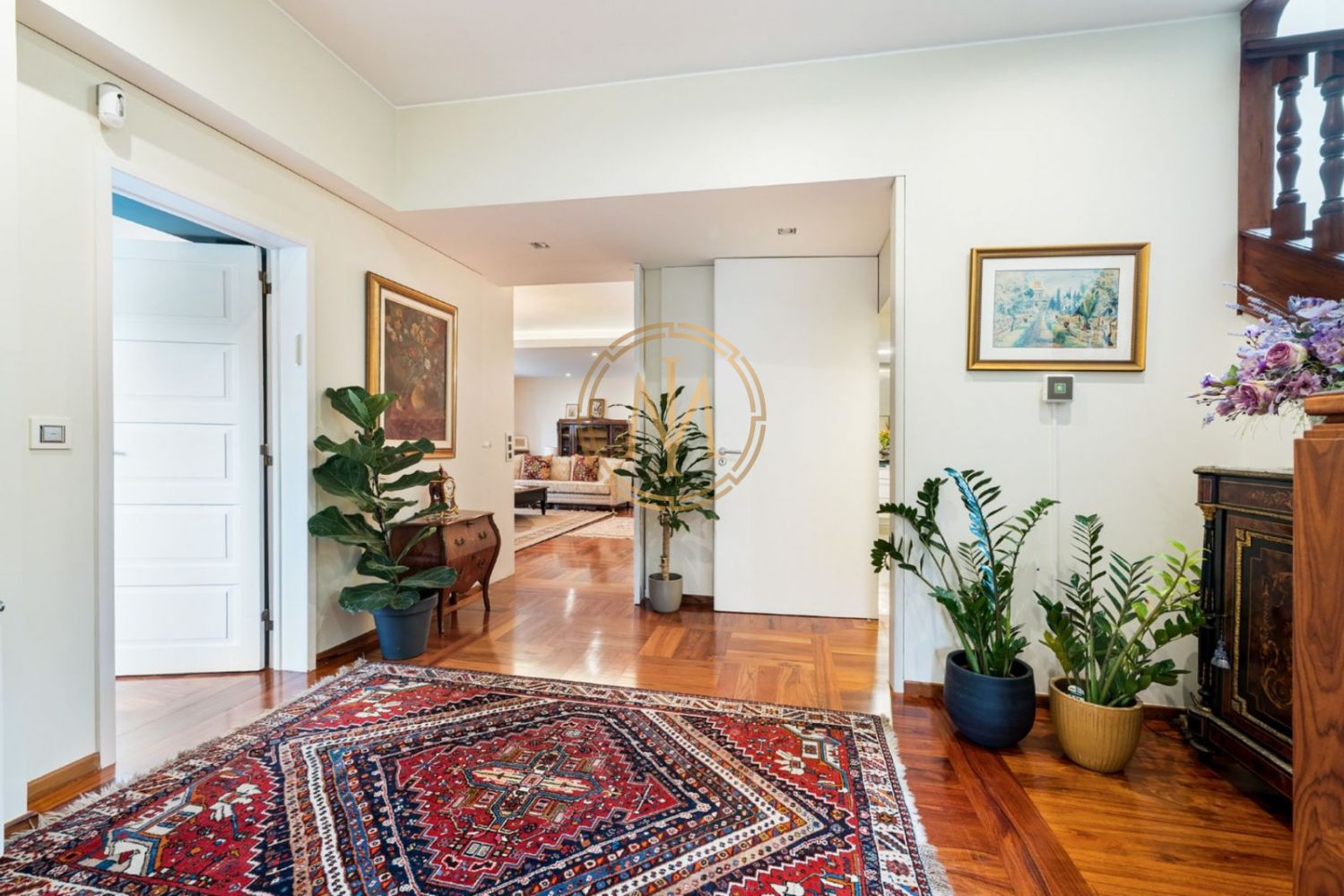 Palacete edificado em 1941 cuidadosamente preservado no Campo Alegre, a 2 minutos a pé do jardim botânico do Porto. Com uma área útil de 666 m², inserida num generoso lote de 1.740 m², esta propriedade oferece espaços amplos, luminosos e cuidadosamente distribuídos, ideais para quem valoriza privacidade, sofisticação e uma vivência tranquila no centro da cidade. Diz-se que poetas redigiram enquanto lá pernoitavam tamanha a beleza do local. No coração do Bairro de Hollywood, uma das zonas mais nobres e exclusivas da cidade do Porto, esta imponente moradia clássica destaca-se pelo equilíbrio harmonioso entre charme intemporal, conforto moderno e um forte sentido de herança patrimonial. A arquitetura clássica revela-se em cada detalhe – desde os acabamentos elegantes às linhas arquitetónicas que contam histórias – criando uma atmosfera única, onde passado e presente se encontram com naturalidade. Este belo e exclusivo imóvel, contém muito mais do que história, contém recantos de sofisticação e bom gosto. Ao adentrar no imóvel, somos imediatamente cativados por um recatado jardim com isolamento total para a rua, o que permite desfrutar de uma leitura, apanhar sol ou momentos em família. Passada a sua grande porta principal preservada ainda datada da edificação, deslumbramos um amplo hall com escadarias de madeira preservadas e cuidadas, que nos dá a primeira perspetiva da dimensão da casa e da luminosidade extraordinária da mesma. No rés do chão, este imóvel possui um escritório, uma sala de estar de grandes dimensões, uma sala de jantar com capacidade para 20 ou mais pessoas sentadas à mesa com vista direta para o jardim principal e ainda a cozinha e uma casa de banho. A cozinha, também ela de grande dimensão, possui uma ilha, dois fornos, fogão, dois frigoríficos, micro-ondas, exaustor e garrafeira refrigerada. Ao descer ao piso -1, que não se situa no subsolo, apenas abaixo da entrada principal, como é caraterística marcante das casas e palacetes do Porto daquele tempo, encontramos um confortável quarto em suite com uma grande varanda virada para o jardim e muita arrumação, uma lavandaria completa, um escritório, uma casa das máquinas, uma casa de banho, uma sala de arrumação com armários em todas as paredes que dá acesso a um antigo cofre devidamente isolado, uma despensa que poderá ser usada com essa finalidade ou como sala de música, por exemplo. No piso superior desta belíssima habitação, encontram-se quatro quartos, todos com roupeiros embutidos até ao teto, uma casa de banho completa e uma máster suite com closet e casa de banho em mármore com chuveiro e banheira. A área destinada à zona de repouso possui uma janela deslizante diretamente virada para o jardim traseiro. Este palacete está preparado para receber elevador, e já possui local e pré-instalação, caso o seu futuro proprietário assim o queira. O enorme jardim deste palacete, que aflui desde a entrada estendendo-se até às traseiras, inclui uma fonte de água em azulejo. O jardim apresenta-se com as mais belas flores, árvores e arbustos. Possui bastantes limoeiros e bambus, fazendo lembrar parte do jardim botânico dentro de portas. No caminho pelo jardim vemos o passeio lateral de acesso à garagem, com capacidade para quatro carros no interior, e para mais alguns no caminho de acesso à mesma. Próximo à garagem, foi restruturada uma sala de conferências, com uma cozinha completa e perfeitamente funcional e uma casa de banho completa. Devido à sua dimensão, é perfeitamente possível adaptar ao propósito que o seu futuro proprietário a quiser destinar. Este imóvel insere-se perfeitamente na ideia de ex-libris e luxo do Porto, sendo estrategicamente localizado no coração do Campo Alegre, próximo à futura linha rosa do metro, servido de autocarros, e a escassos metros de todo o tipo de comércio e serviços. Mais do que descrever esta beleza única, num dos sítios mais cobiçados e desejados do Porto, é ver com os próprios olhos e sentir cada pedaço de arte e de história que apenas este imóvel lhe pode oferecer. Agende já a sua visita!