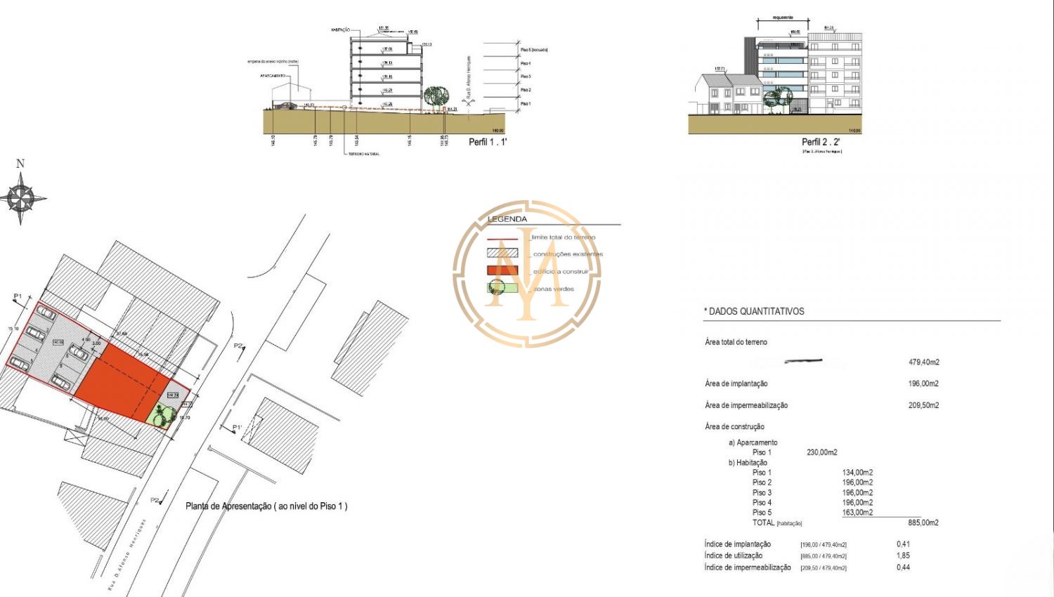 Terreno com PIP aprovado para construção de edifício de habitação Multifamiliar na Maia Segundo pedido de informação prévia, este fantástico terreno terá capacidade construtiva de um edifício com 5 andares, dividido pelas seguintes áreas: .Área do terreno: 479,40 m2 .Área de implantação: 196,00 m2 .Área de impermeabilização: 209,50 m2 .Área de construção total: 885,00m2 .Aparcamento: 230 m2 .Piso 1: 134,00m2 .Piso 2: 196,00m2 .Piso 3: 196,00m2 .Piso 4: 196,00m2 .Piso 5: 163,00m2 A natureza do terreno é urbano, sendo viabilizada a construção, tal como o PIP indica. O terreno situa-se em Águas Santas, na Maia, uma das grandes cidades dormitório do Porto, pelo que se prevê rentabilidade garantida, dado que nos arredores, muitos destes empreendimentos são vendidos ainda em planta, face a enorme procura pela área. Nas proximidades do terreno, existem diversos serviços, como comércio, restaurantes, escolas, farmácias, centro de saúde... Ainda possui enorme facilidade de acesso às principais vias de acesso ao Porto. Fale connosco para agendar a sua visita e saber mais informações. IM HOME, é uma agência imobiliária portuguesa, presente no mercado nacional há 2 anos, especializada no mercado residencial prime e faz parte do Grupo IM COMPANY com 14 anos de trabalho e dedicação no Porto e Região, nas áreas de Arquitetura, Construção, Engenharia e Decoração.